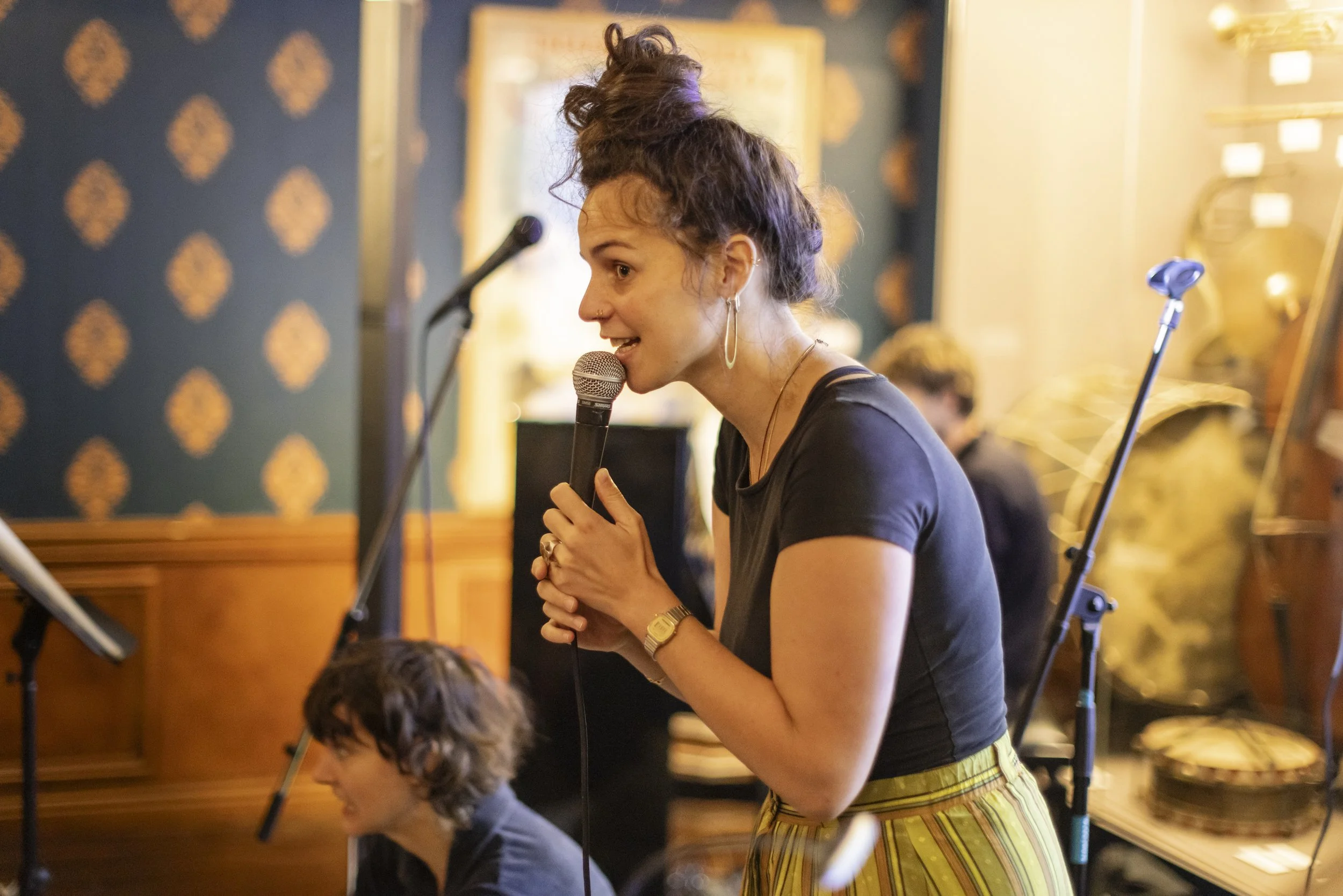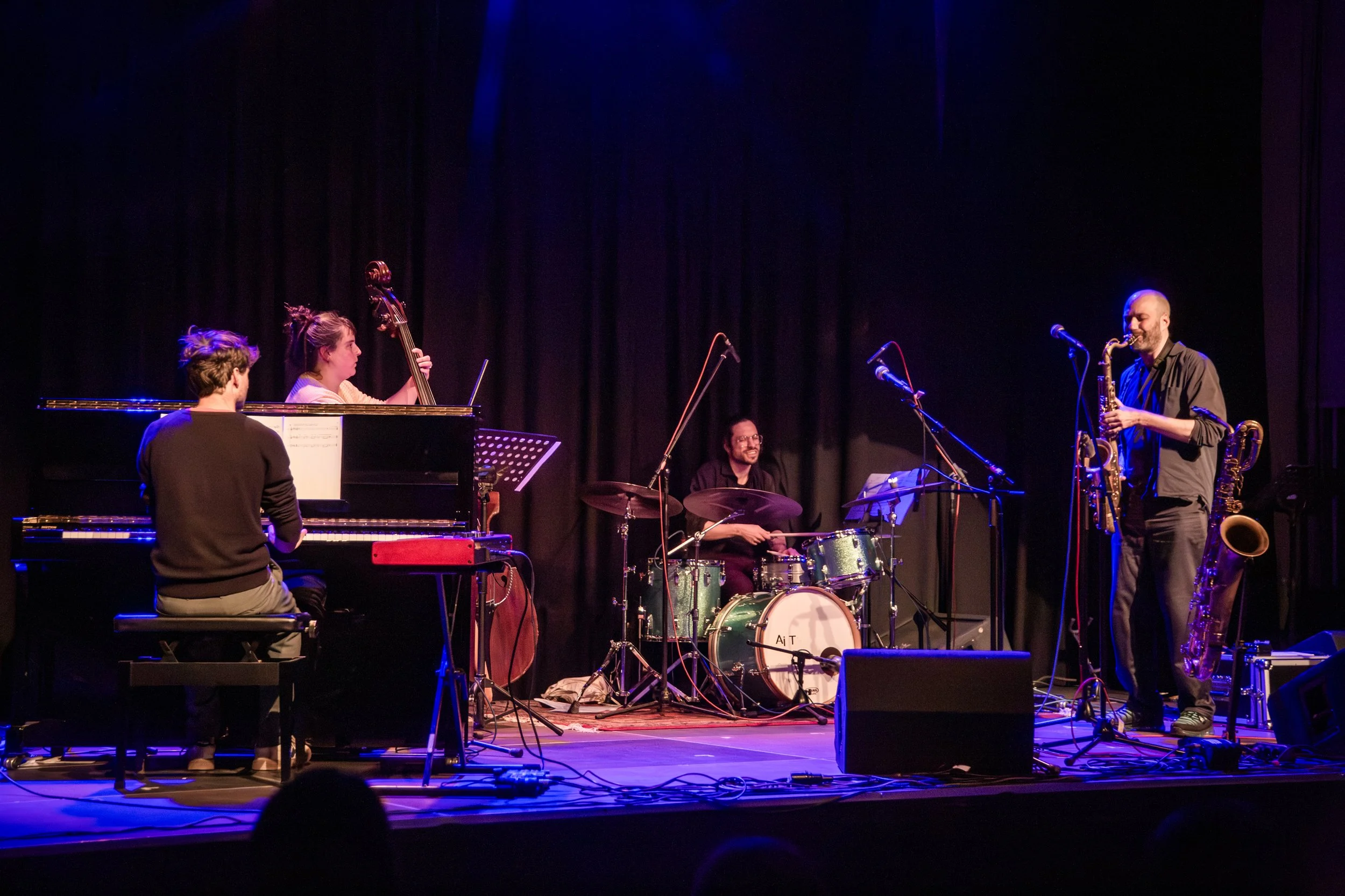 ARTIESTEN: De muzikanten van BAMBAMherrie: zangeres Hanne Peetermans, pianist David Van Kerckhoven, saxofonist Vincent Brijs , contrabassiste Lotte De Blieck, drummer Jonas Boutsen + Letterzetter Maud Vanhauwaert